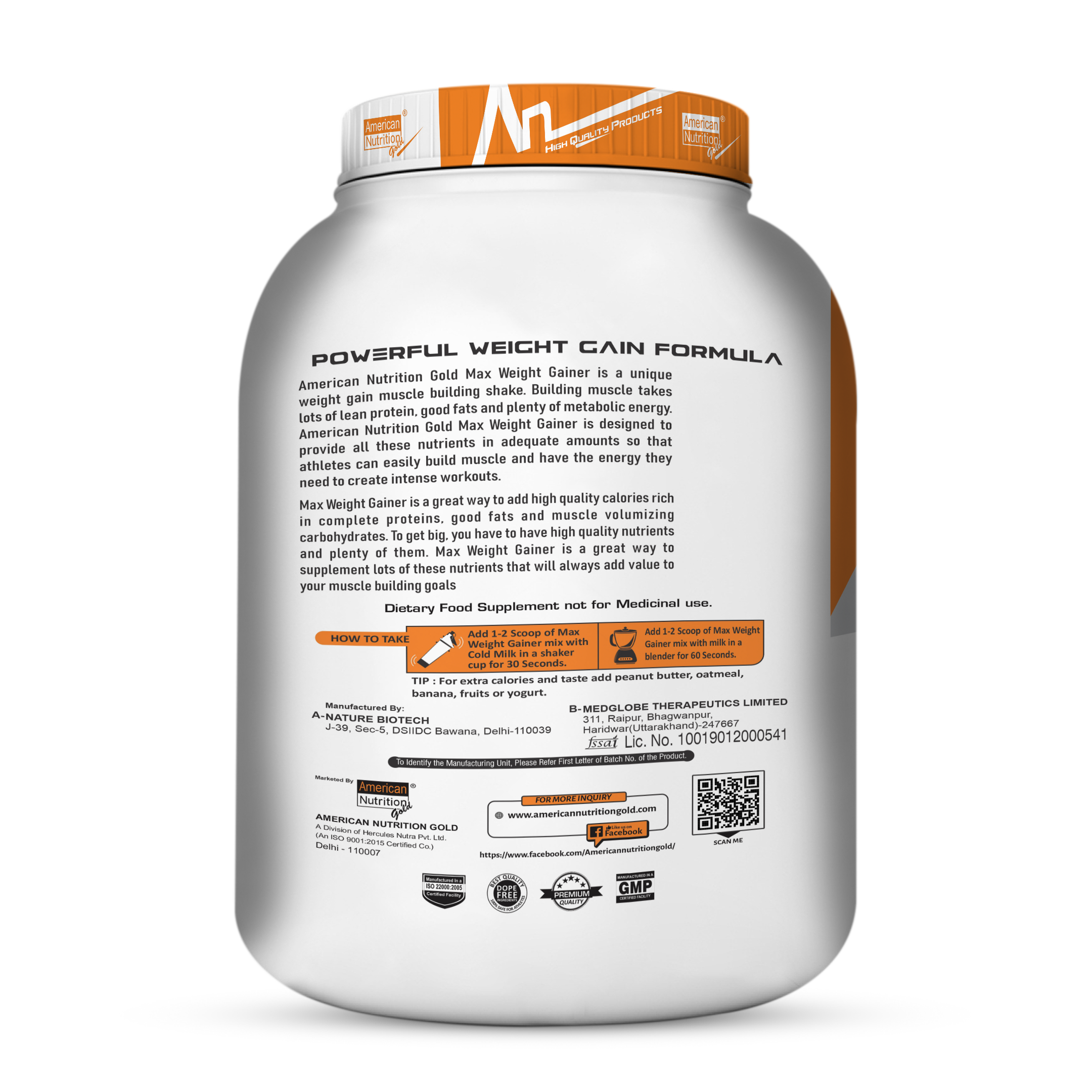 Boost your muscle mass and strength with American Nutrition Max Weight Gainer Chocolate – the perfect supplement for rapid weight gain and muscle growth.