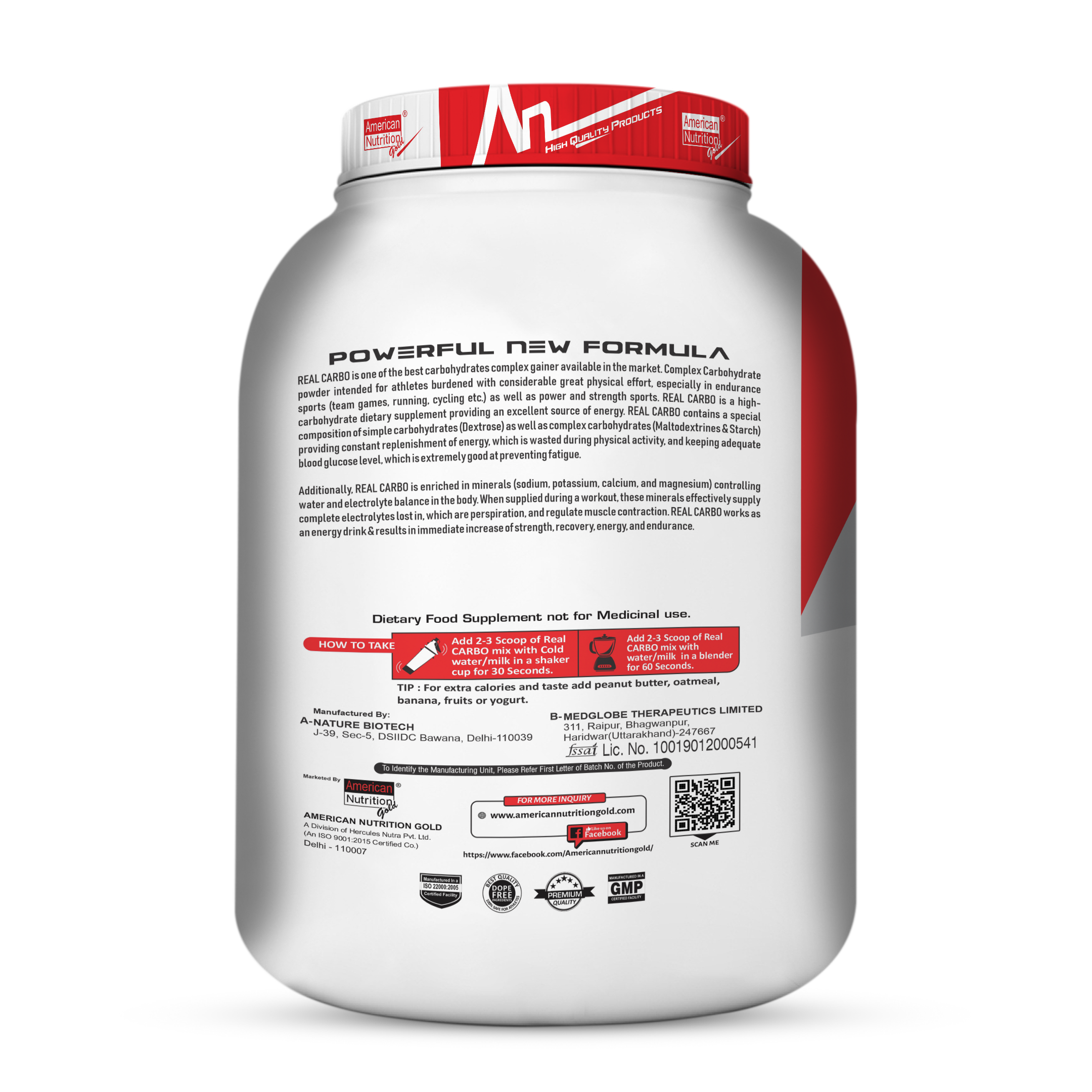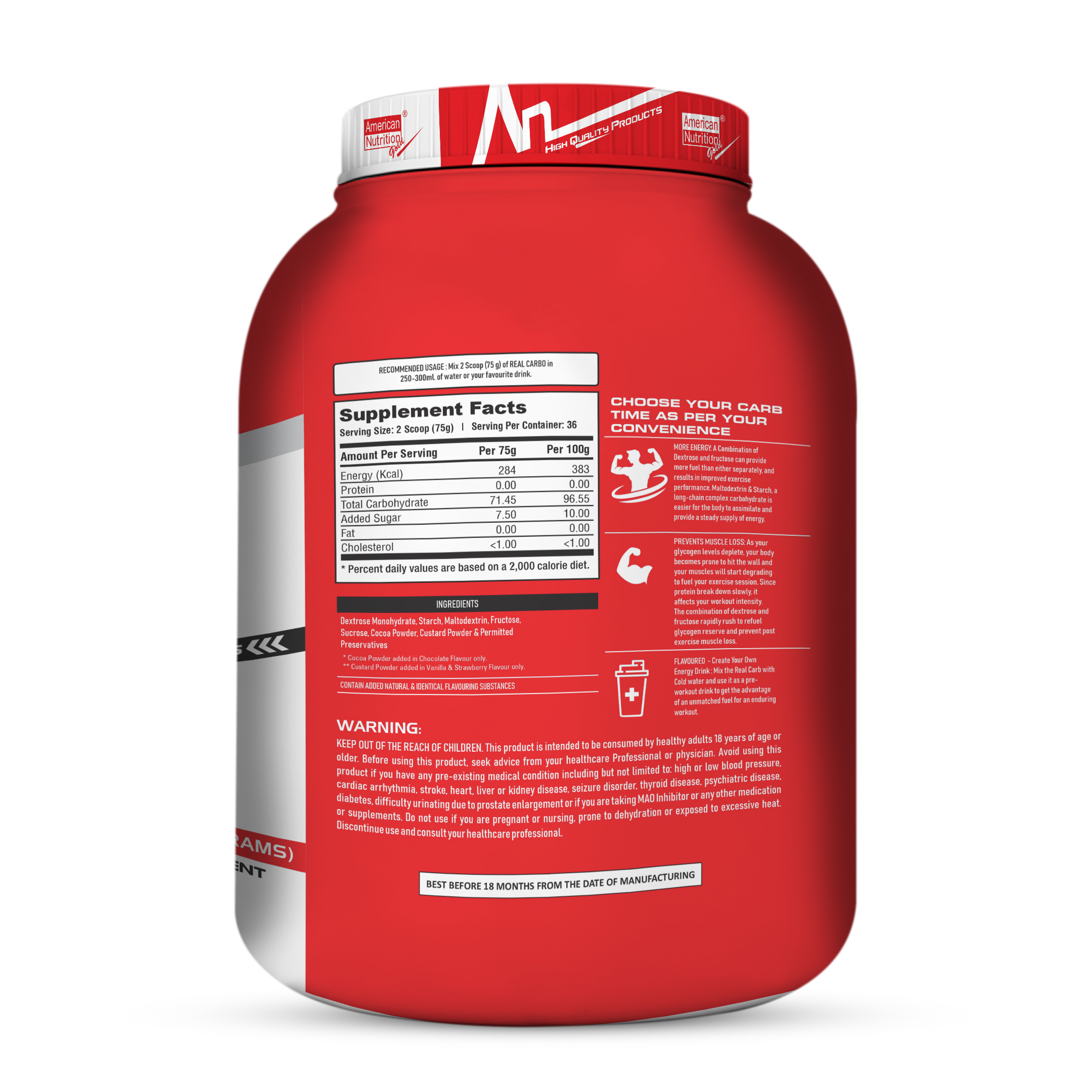 If you're looking to build mass, fuel intense workouts, and provide your body with a steady stream of energy, American Nutrition Real Carbo Gainer 2.7 Kg is the perfect supplement for you. This high-calorie mass gainer is specifically designed for athletes and fitness enthusiasts who want to increase muscle mass and improve performance. With 26 servings per container, it provides the essential carbohydrates and proteins needed to enhance your training and recovery.