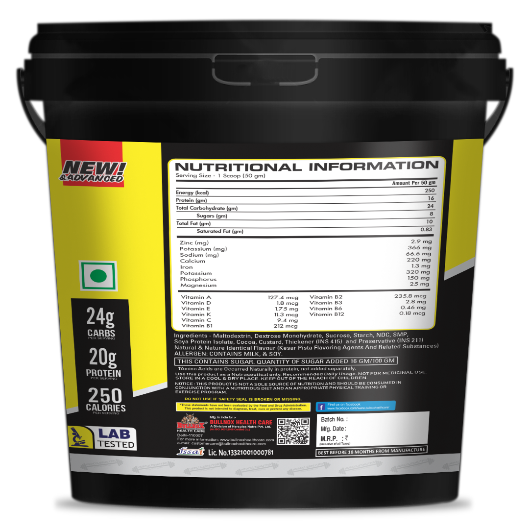 Bullnox Health Care Gainer Fast is a high-quality mass gainer supplement designed to help you build muscle, gain weight, and boost overall strength. With a potent blend of whey protein, casein protein, carbohydrates, and essential amino acids, this formula provides everything your body needs for effective muscle growth and recovery. Whether you're a bodybuilder, athlete, or someone looking to gain weight, Bullnox Health Care Gainer Fast supports your goals by enhancing your energy, endurance, and muscle development.