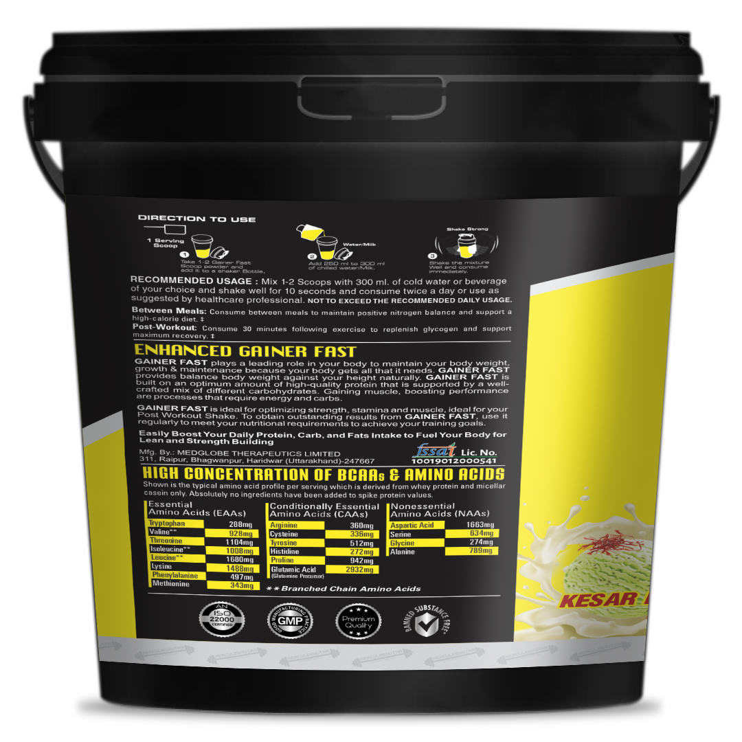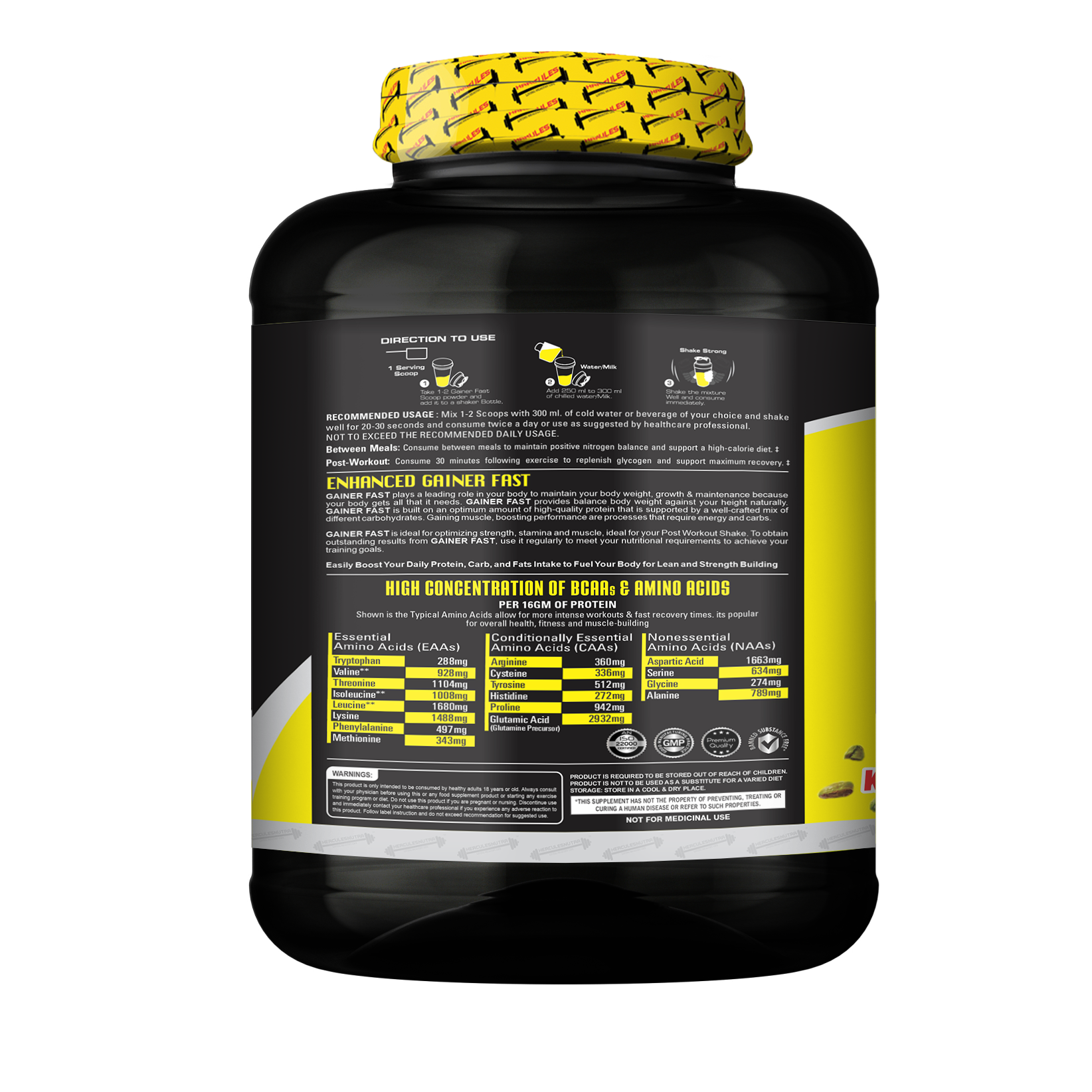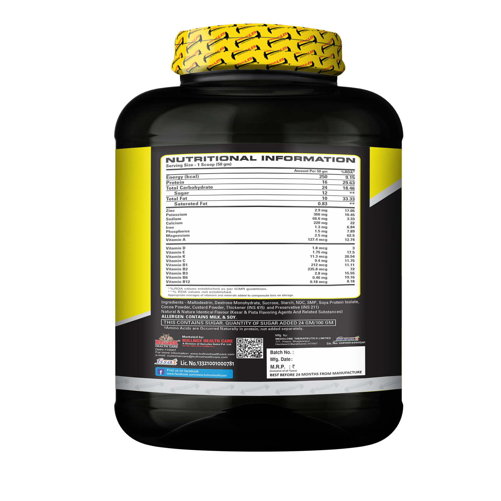 Bullnox Health Care Gainer Fast is a vegetarian, gluten-free product made in a GMP-certified facility, free of artificial flavors, colors, and sweeteners. Mix one scoop with water or milk post-workout or as a meal replacement to fuel your body with the nutrients it needs.