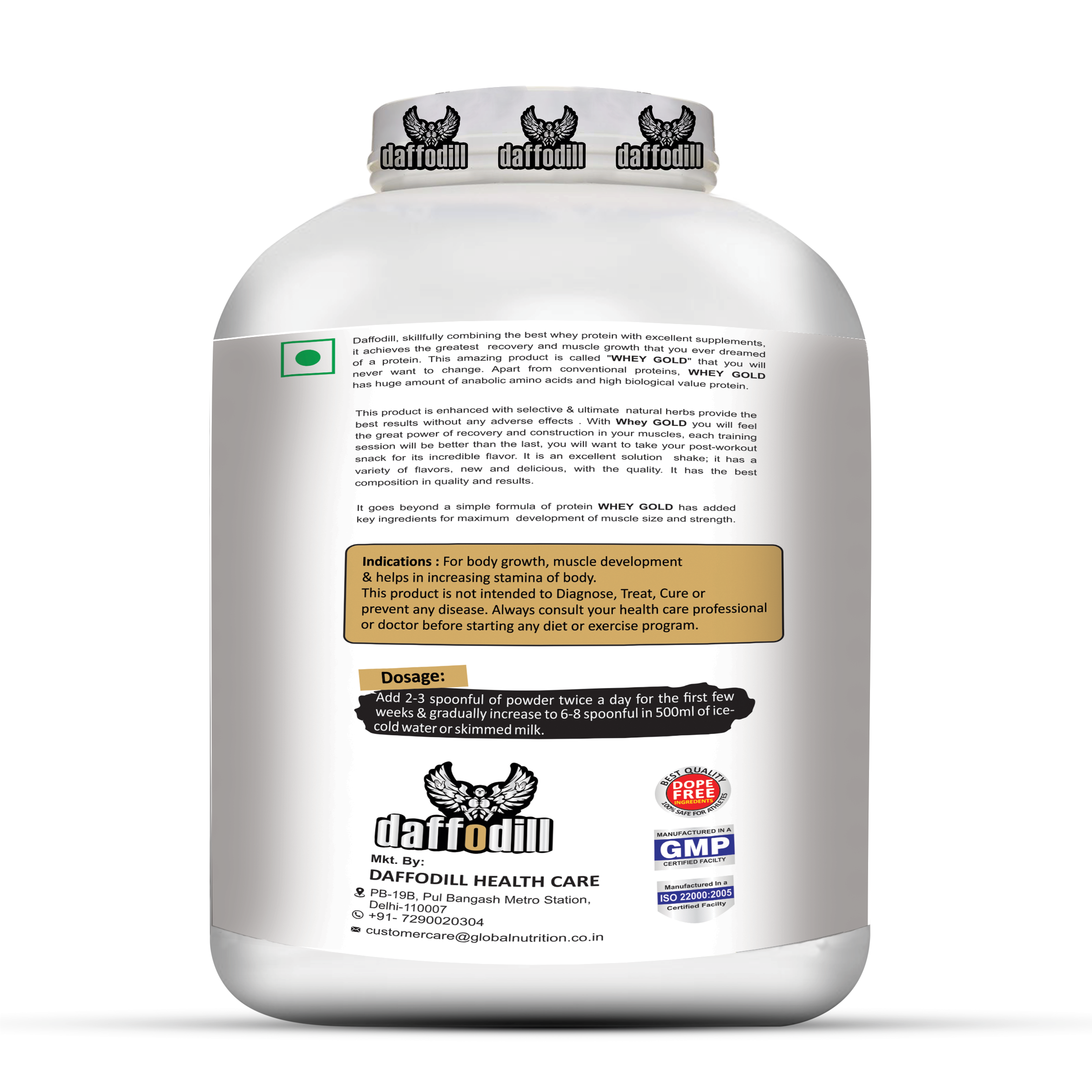 Daffodil Whey Gold is a premium whey protein powder that is designed to help you build muscle, recover from workouts, and improve your overall health. It is made with whey protein isolate, which is the purest form of whey protein. Whey protein isolate is quickly absorbed by the body, making it ideal for post-workout recovery.