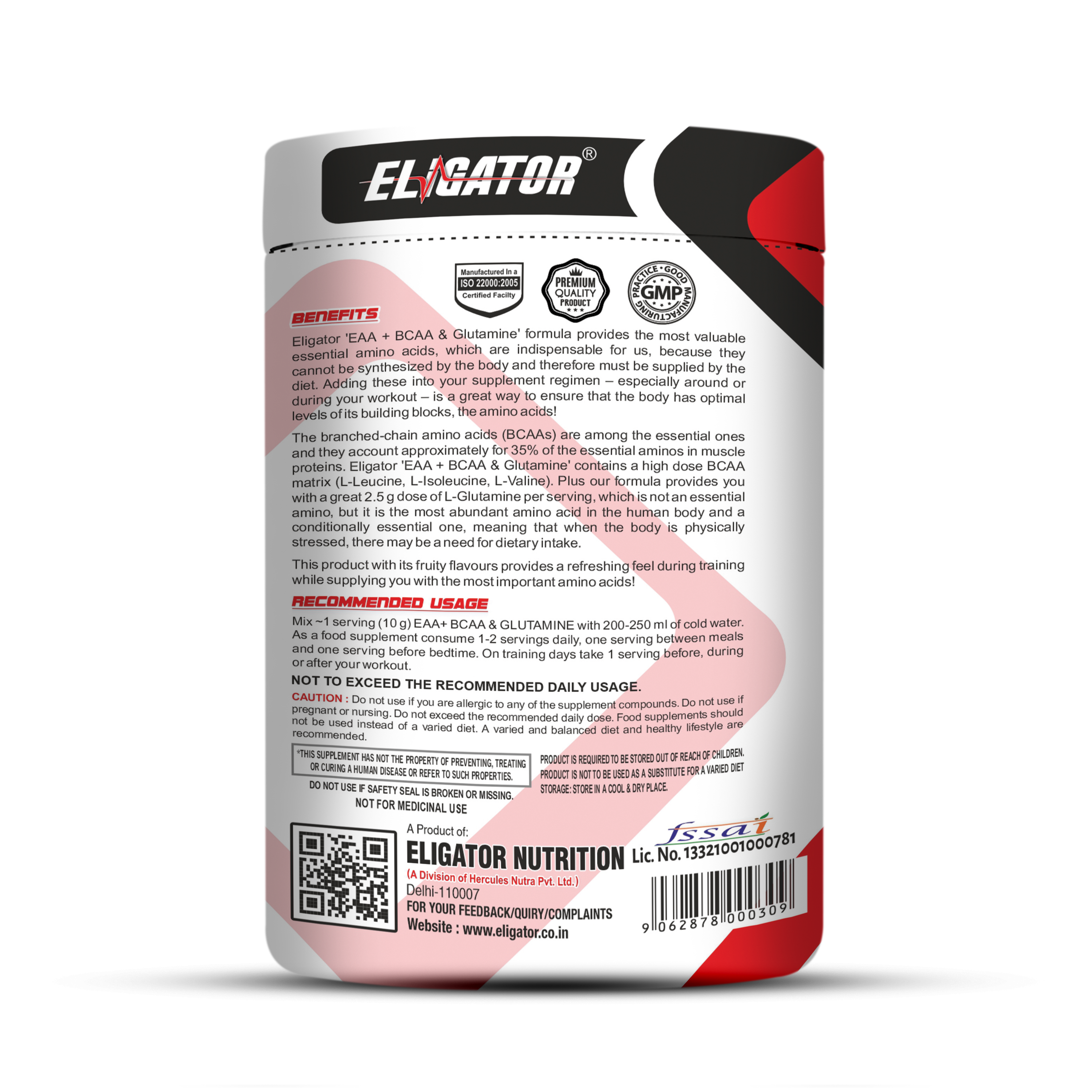 Eligator Nutrition EAA plus BCAA And Glutamine is a dietary supplement that is designed to help you achieve your fitness goals. It is made with a blend of essential amino acids (EAAs), branched-chain amino acids (BCAAs), and glutamine, which are all important for muscle growth, repair, and recovery.