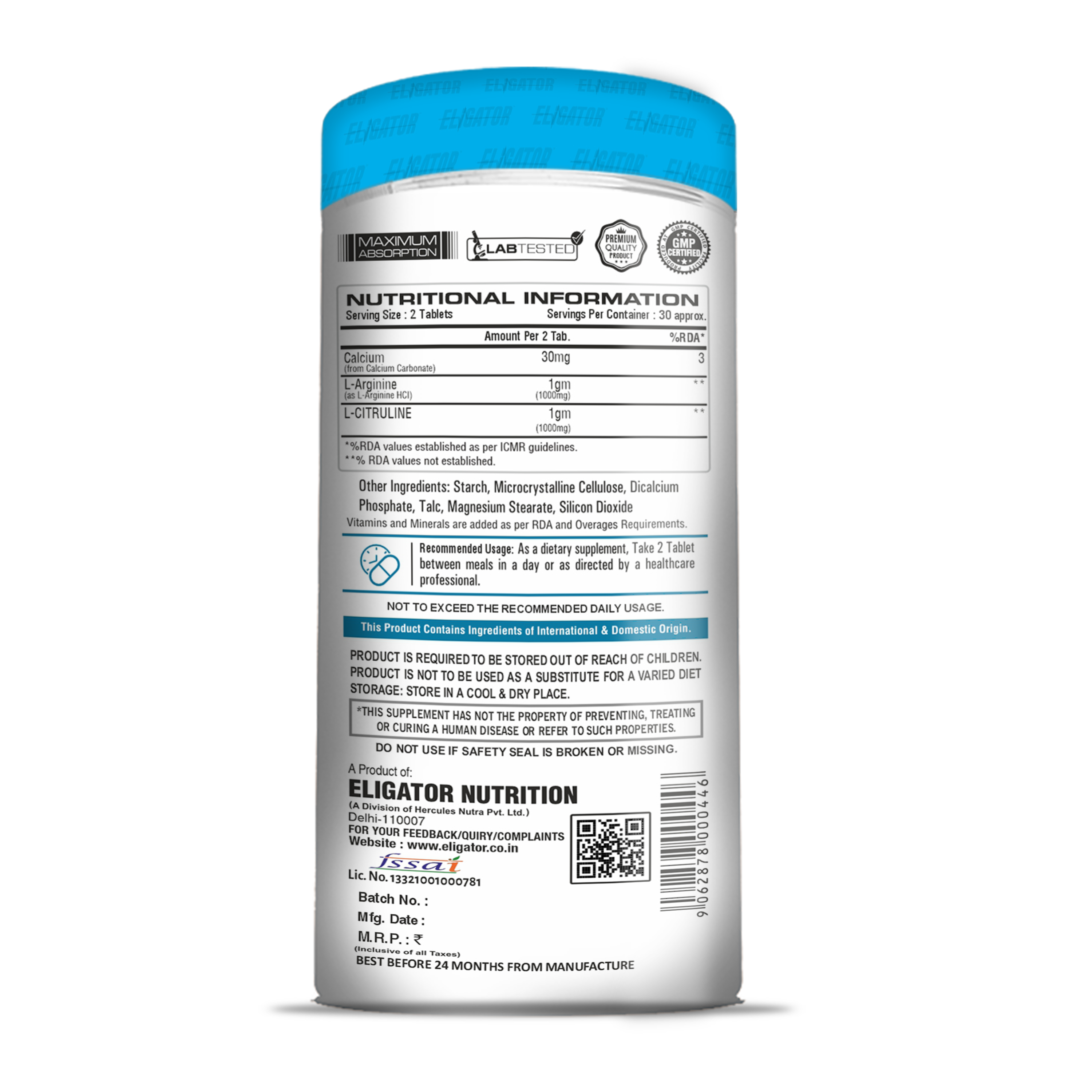 Eligator Nutrition L-Arginine 60 Tables