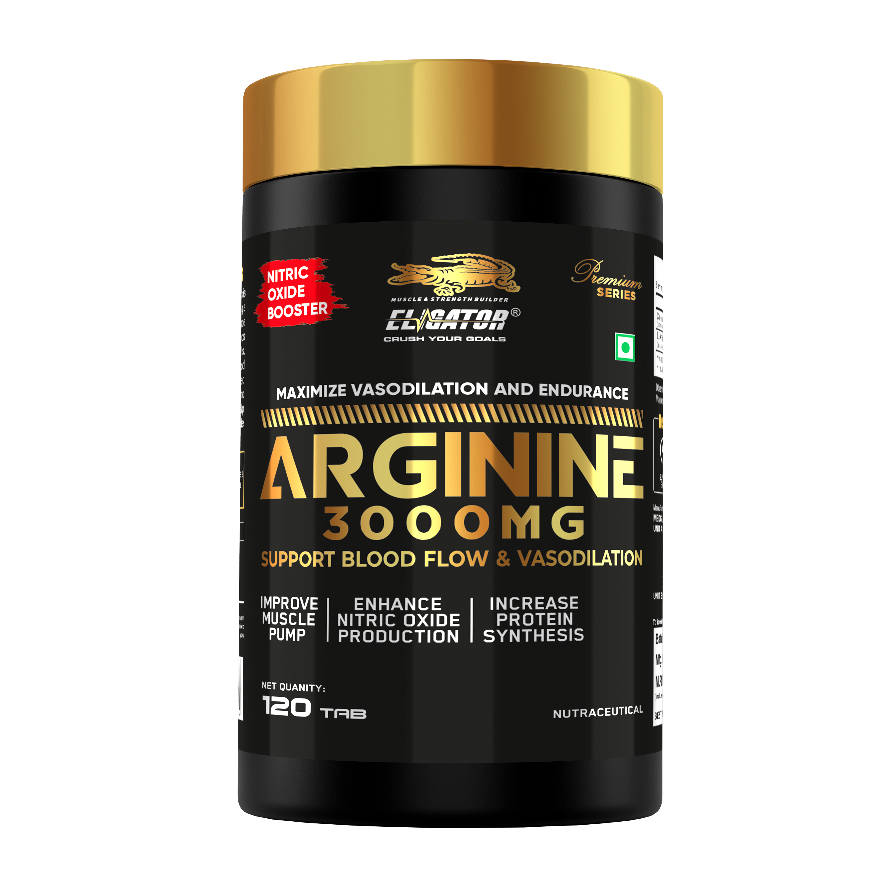 Eligator Nutrition Premium Series Arginine 3000 Mg 90 Tablets is a high-quality supplement designed to support enhanced athletic performance, improved circulation, and overall cardiovascular health. L-Arginine is an essential amino acid that plays a key role in nitric oxide production, which helps to dilate blood vessels, allowing for better blood flow and oxygen delivery to muscles during intense workouts. This formula delivers 3000 mg of pure L-Arginine per serving, making it a powerful tool for anyone looking to improve endurance, muscle pumps, and recovery.