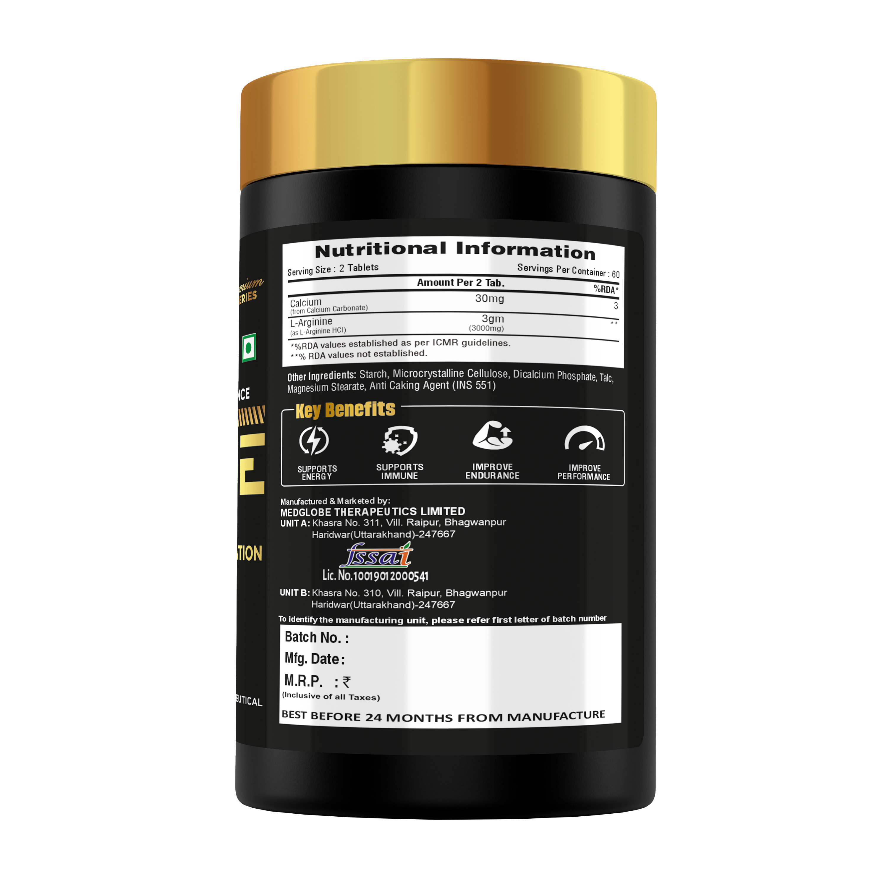 Take one tablet of Eligator Nutrition Premium Series Arginine daily to support better workouts, improved recovery, and overall health. Perfect for those looking to push their limits!