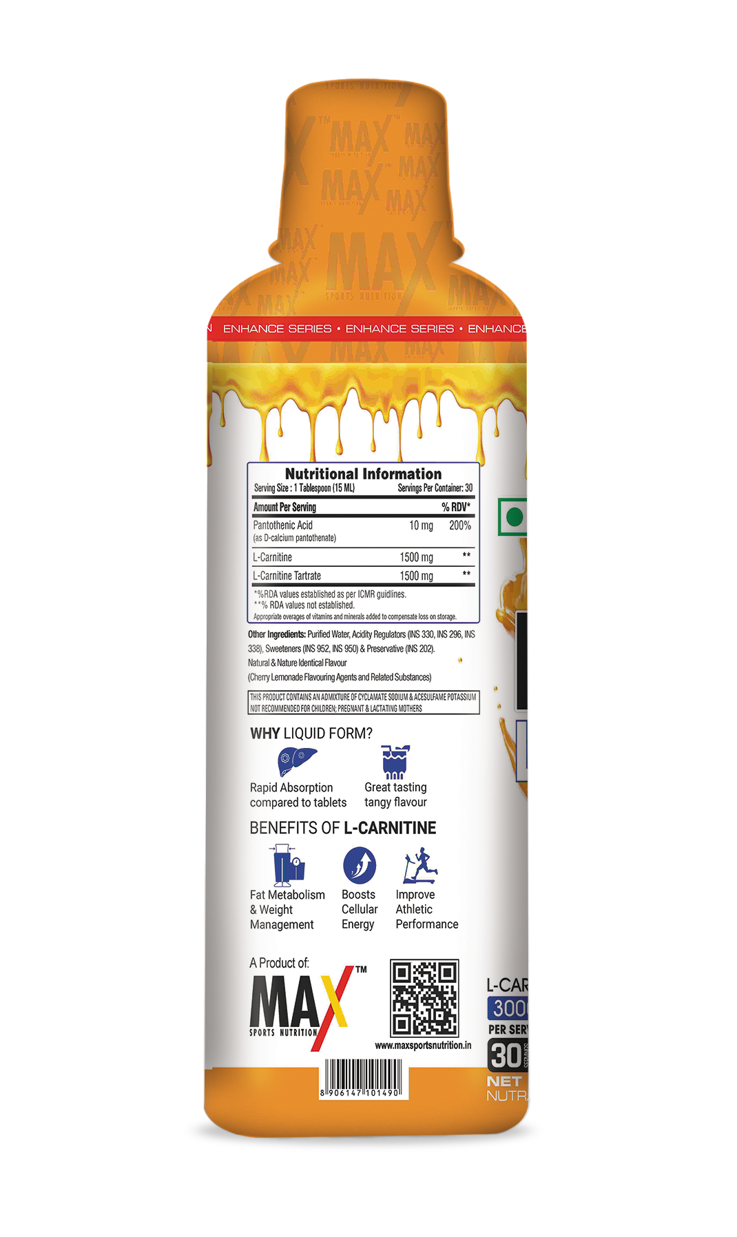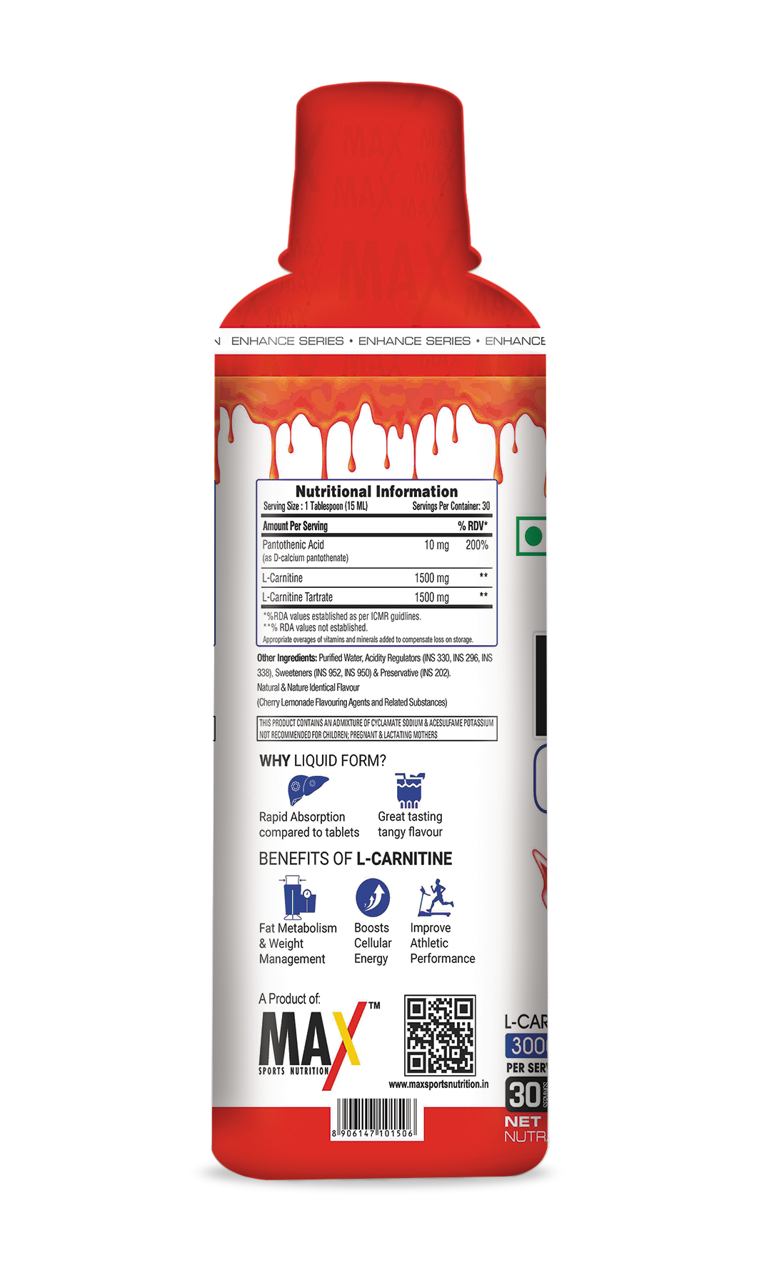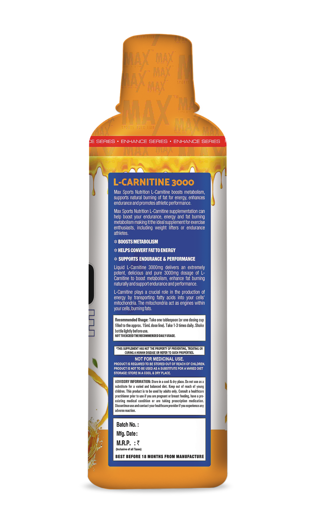 Max Sports L-Carnitine 3000 Mg Liquid is a high-potency supplement designed to support your fitness journey and enhance your athletic performance. With each serving delivering a powerful 3000 mg of L-Carnitine, this liquid formula is designed to help your body efficiently convert stored fat into energy, improving fat metabolism and promoting weight loss. Whether you're looking to boost energy during workouts, increase endurance, or support overall fat burning, Max Sports L-Carnitine 3000 Mg Liquid is a must-have addition to your supplement regimen.