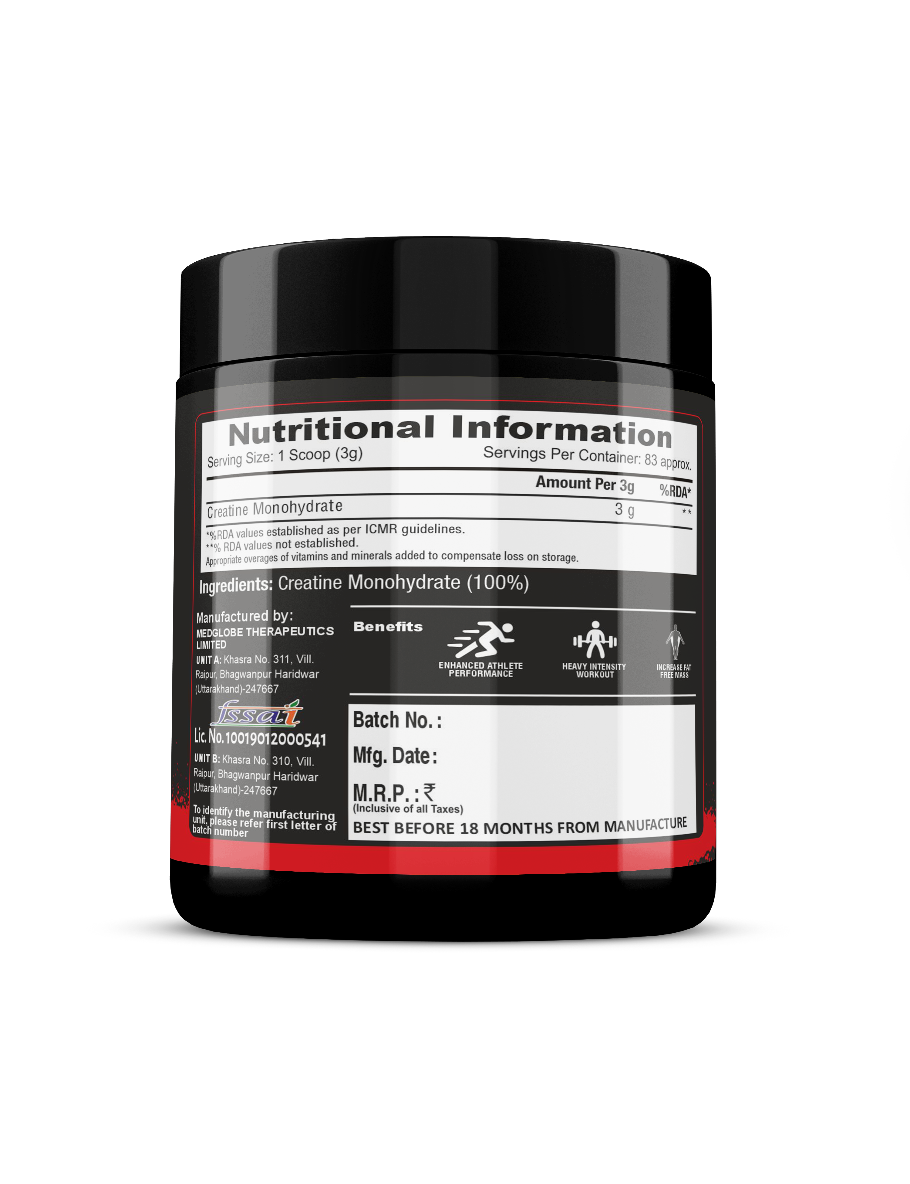 • Promotes Muscle Growth: Helps increase muscle mass by improving workout performance and supporting muscle recovery.
