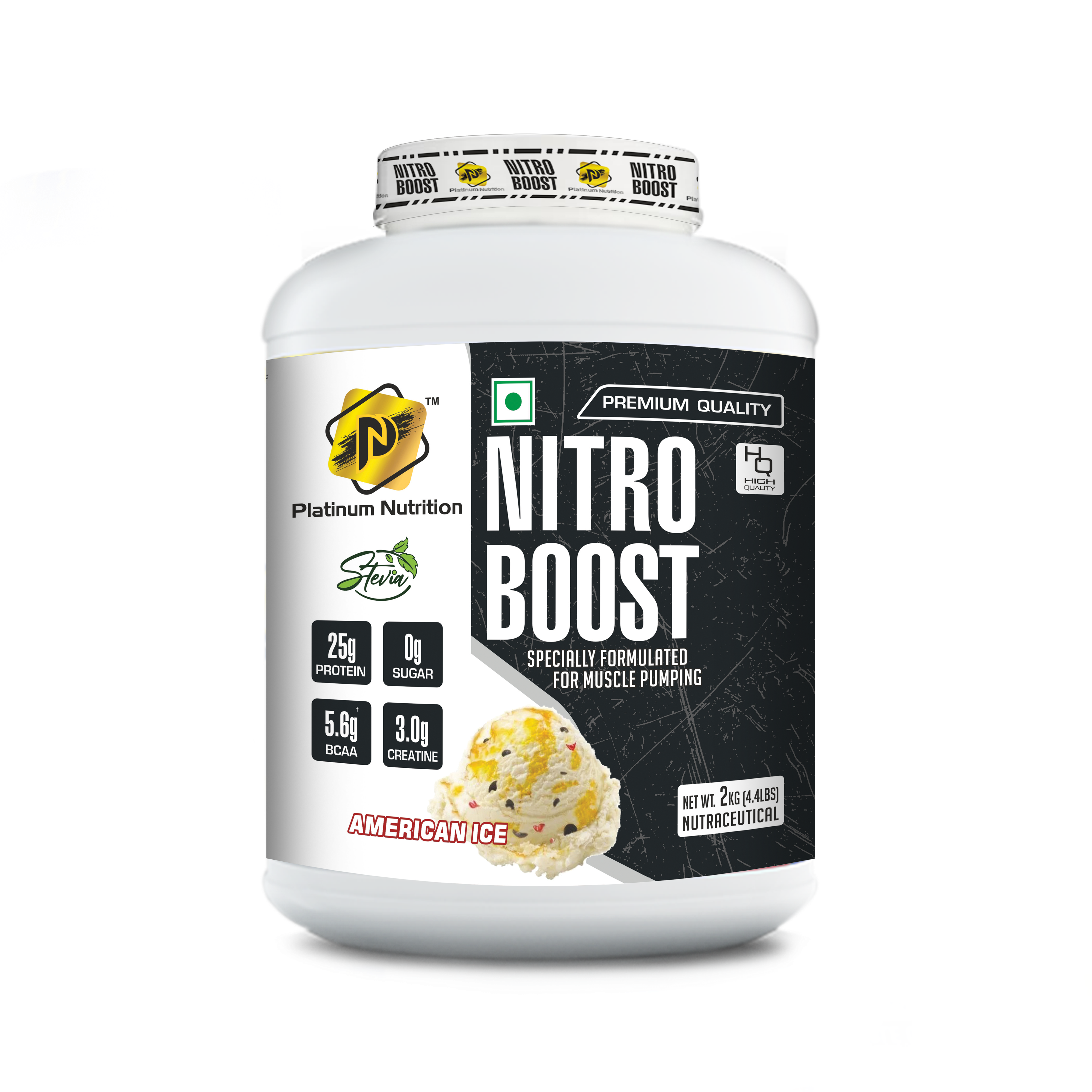 Platinum Nutrition Nitro Boost Whey Protein 2 kg is a premium whey protein supplement designed to fuel your muscles, enhance recovery, and support overall performance. Available in two delicious flavors – American Ice Cream and Dark Belgian Chocolate, Nitro Boost is the perfect post-workout nutrition to help you maximize results after intense training.