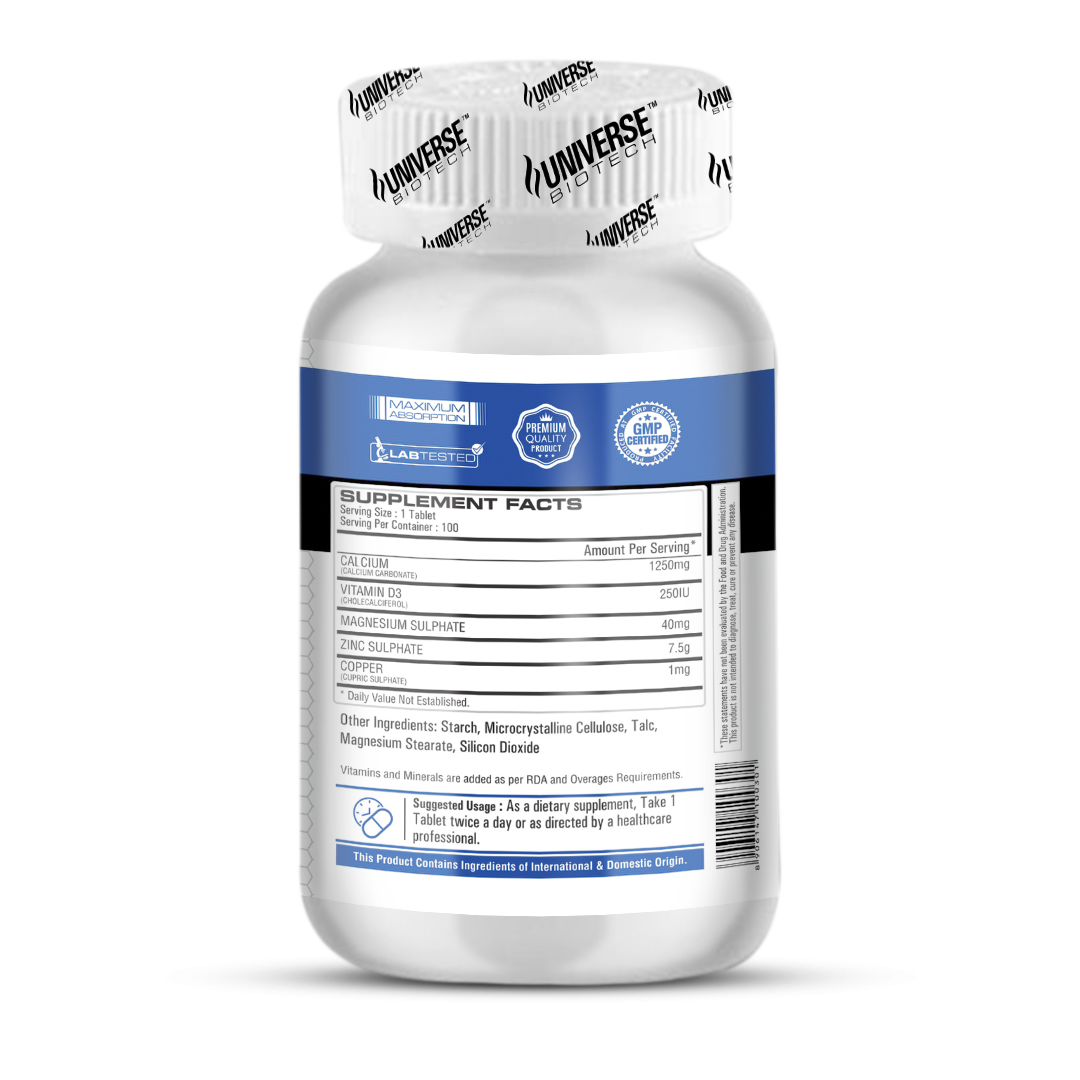 UNIVERSE BIOTECH's Calcium, Zinc, Magnesium & Vitamin D3 Tablets are specially formulated with four vital nutrients to keep your body in top shape.