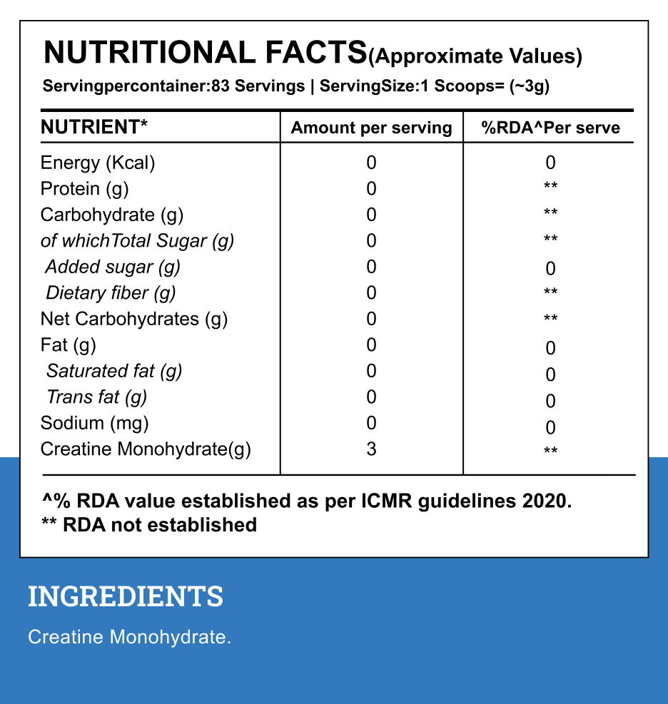 • HOW TO USE: Add one scoop (3g) of Wellcore Creatine Monohydrate Powder to 200ml - 250ml of water or your preferred beverage. Shake well until completely dissolved, and drink.